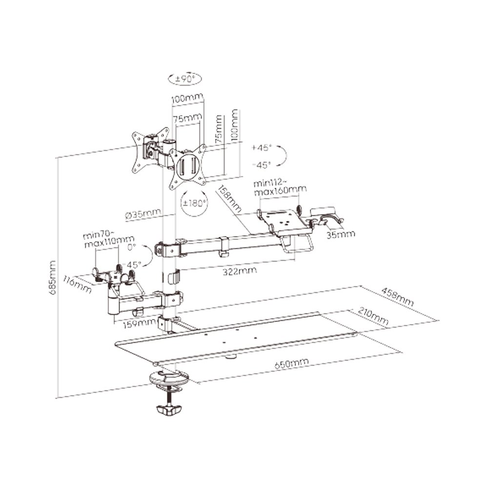 SOPORTE PARA PUNTO DE VENTA IMP/2MON/SCAN FTX FTX-02LD 17″ A 32″ 9KG/ART/ROT180°/GIRO