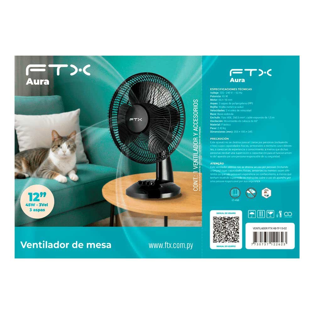 VENTILADOR DE MESA FTX 3 VEL AURA 45W 220V NEG/MET HB-TF-15-02